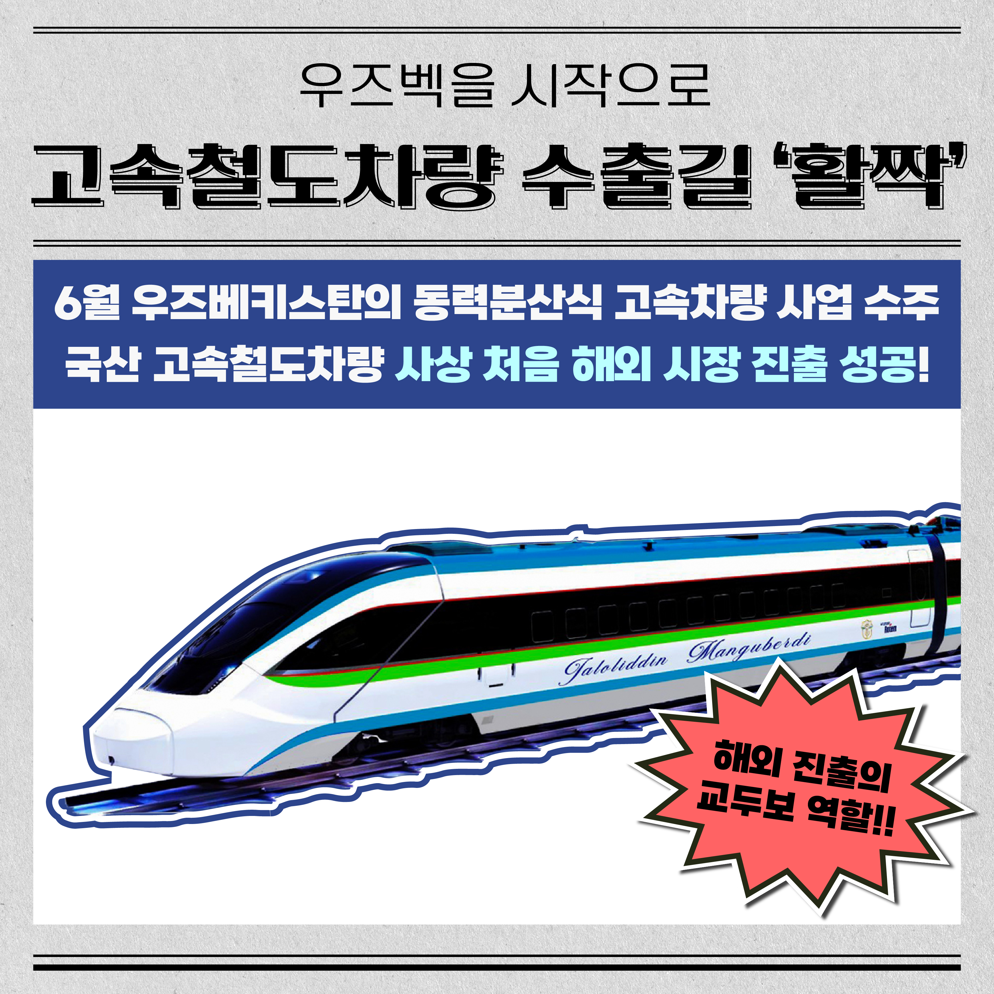 그리고 올 6월, 우즈베키스탄의 동력분산식 고속차량 사업을 수주해 철도 시장에서의 존재감을 한층 키웠는데요. 국산 고속철도차량이 사상 처음으로 해외 시장 진출에 성공한 만큼, 이번 수주가 해외 진출의 교두보 역할을 하게 됐어요. 이 외에도 7월에는 김포골드라인 전동차를 조기 투입해 김포시민들의 교통 편의성을 대폭 향상시키기도 했습니다.