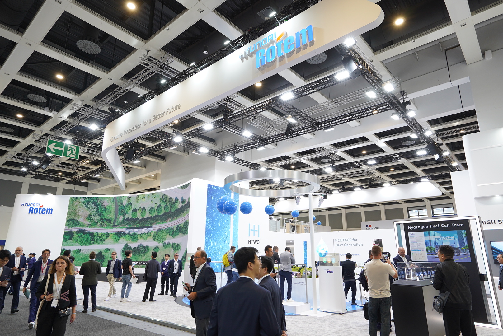 이번 박람회에서 현대로템은 ‘수소 에너지를 통한 친환경 모빌리티로의 패러다임 전환’을 주제로 수소 생산부터 활용까지 이어지는 종합 솔루션 제공 역량을 알립니다. 특히 현대자동차그룹의 수소 밸류체인 사업 브랜드인 ‘HTWO’및 수소의 생산, 저장, 운송 및 활용의 모든 단계에서 고객의 다양한 환경적 특성에 최적화된 맞춤형 패키지를 제공하는 수소 종합 솔루션 ‘HTWO Grid’에 발맞춰 다각도로 전개하고 있는 수소 사업을 소개합니다.