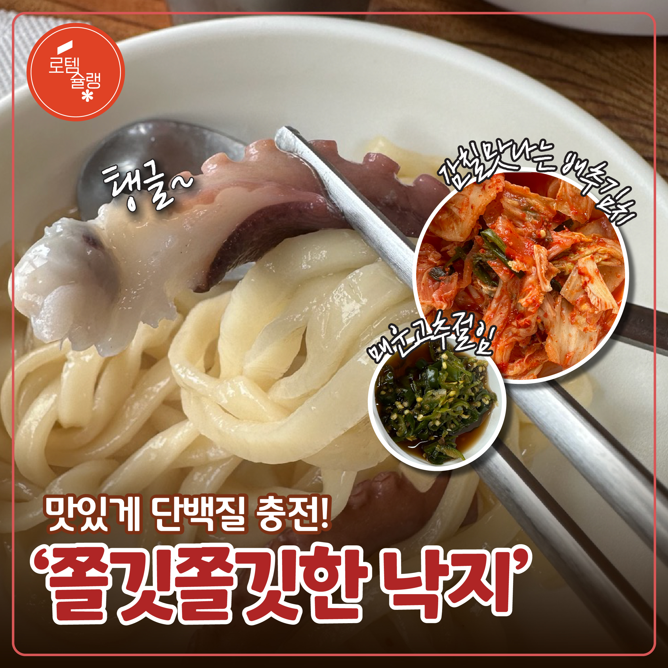 오동통하게 살이 오른 낙지와 바지락이 풍부하게 들어가서 단백질을 충분히 충전할 수 있어요. 낙지를 먹기 좋게 잘라 간장 양념장에 찍어 먹으니 고소한 맛과 함께 낙지의 쫄깃한 식감을 느낄 수 있었는데요. 참고로 낙지 머리에 먹물이 있어 맑은 국물을 드시고 싶다면, 머리 밑 부분을 잘라주세요! 낙지 머리의 먹물은 영양소가 가득해서 꼭 맛보시길 추천드립니다.