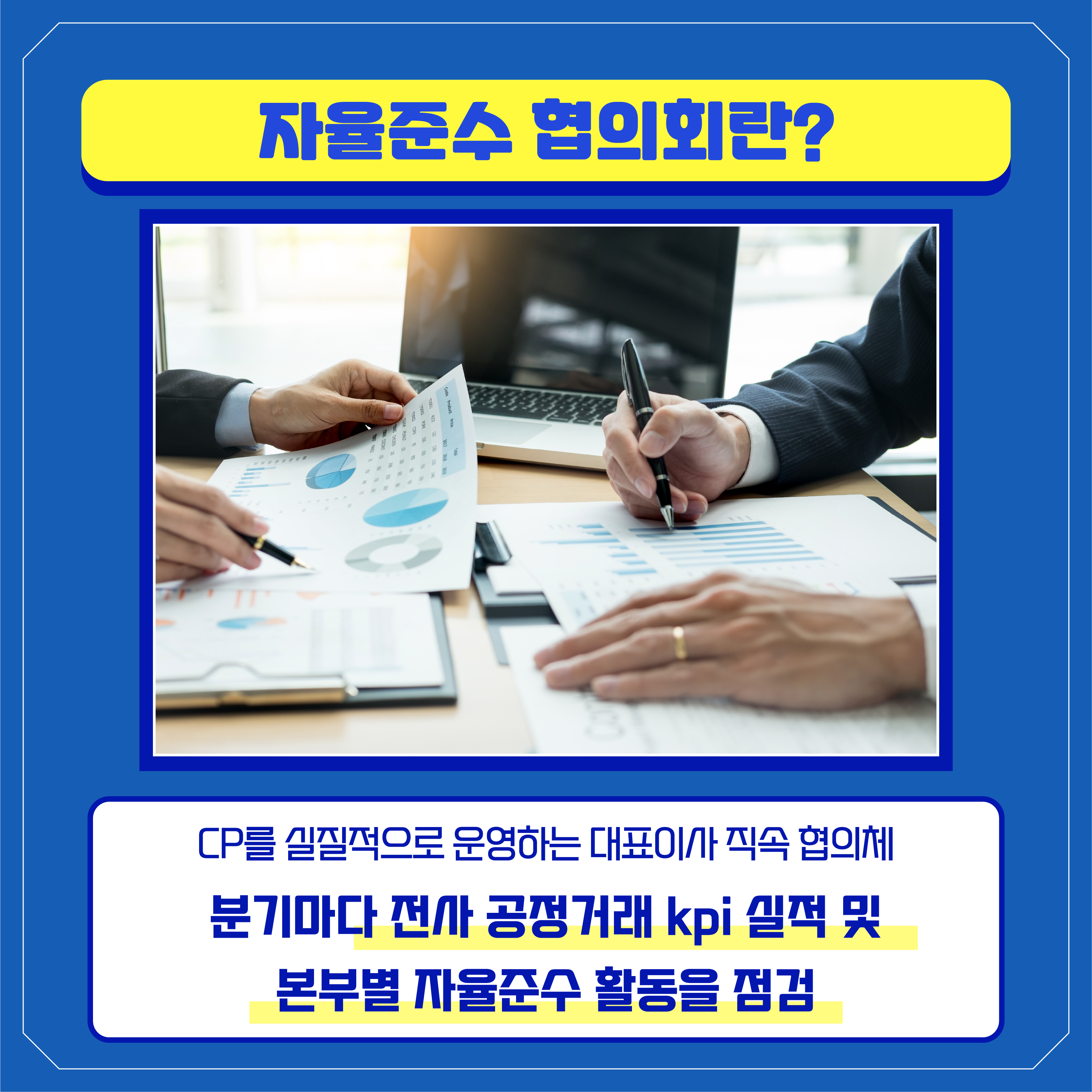 분기마다 전사 공정거래 KPI 실적을 점검하거나 본부별 공정거래 교육 실적을 공유합니다. 또 CP 감사, 후속조치 점검 등을 수행하는 등 CP 운영을 전반적으로 주도했어요.