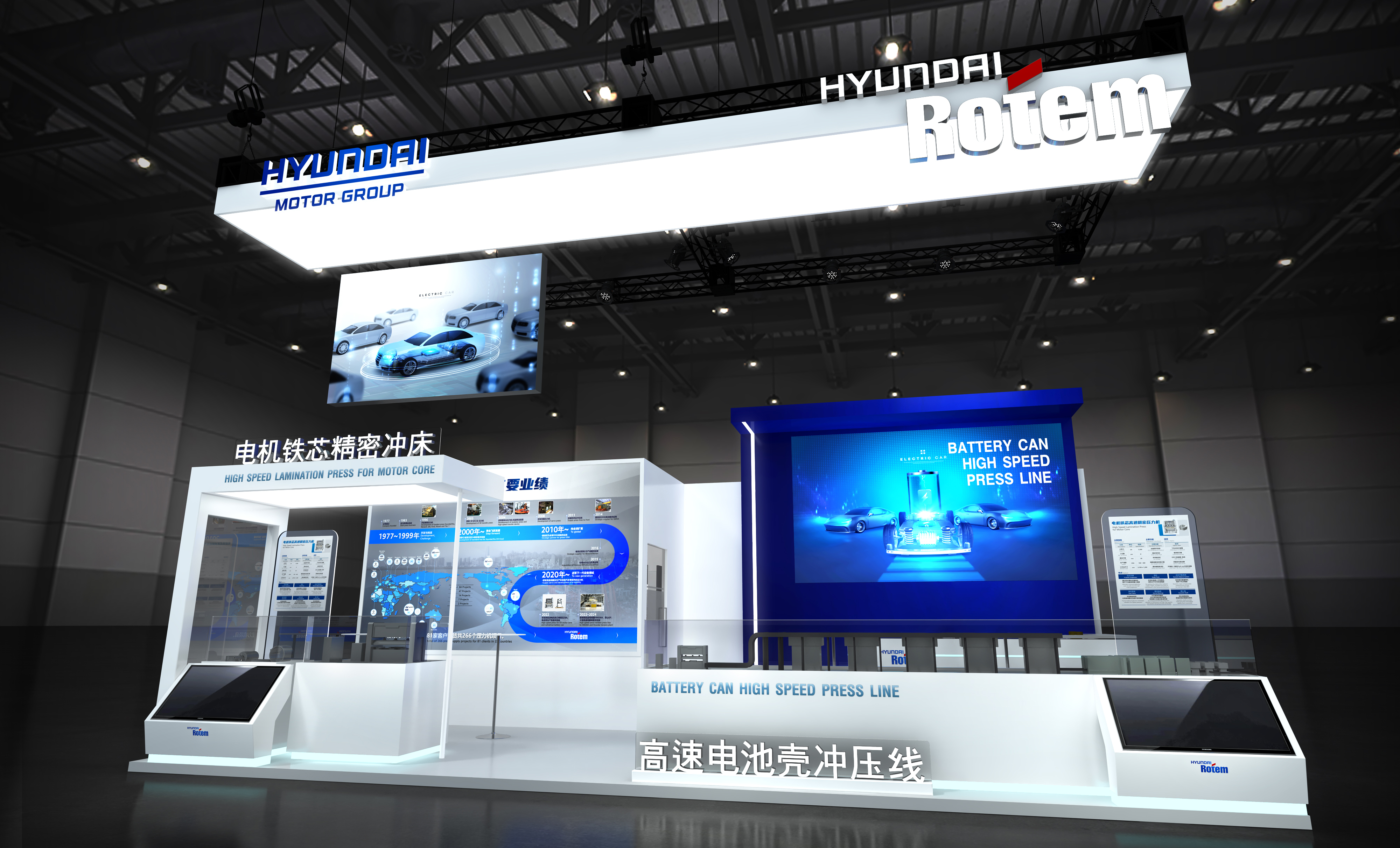 현대로템은 이번 전시회에서 중국을 비롯한 국내외 완성차 업계와 금속 업계를 겨냥해 자체 개발한 프레스 설비를 소개합니다. 중국은 전 세계 전기차 시장 점유율 1위를 기록하고 있으며 전기차용 배터리 80% 이상을 생산하고 있어 모터나 배터리 제조사들의 금속 성형 설비와 공정 자동화 수요가 집중돼 있습니다.
