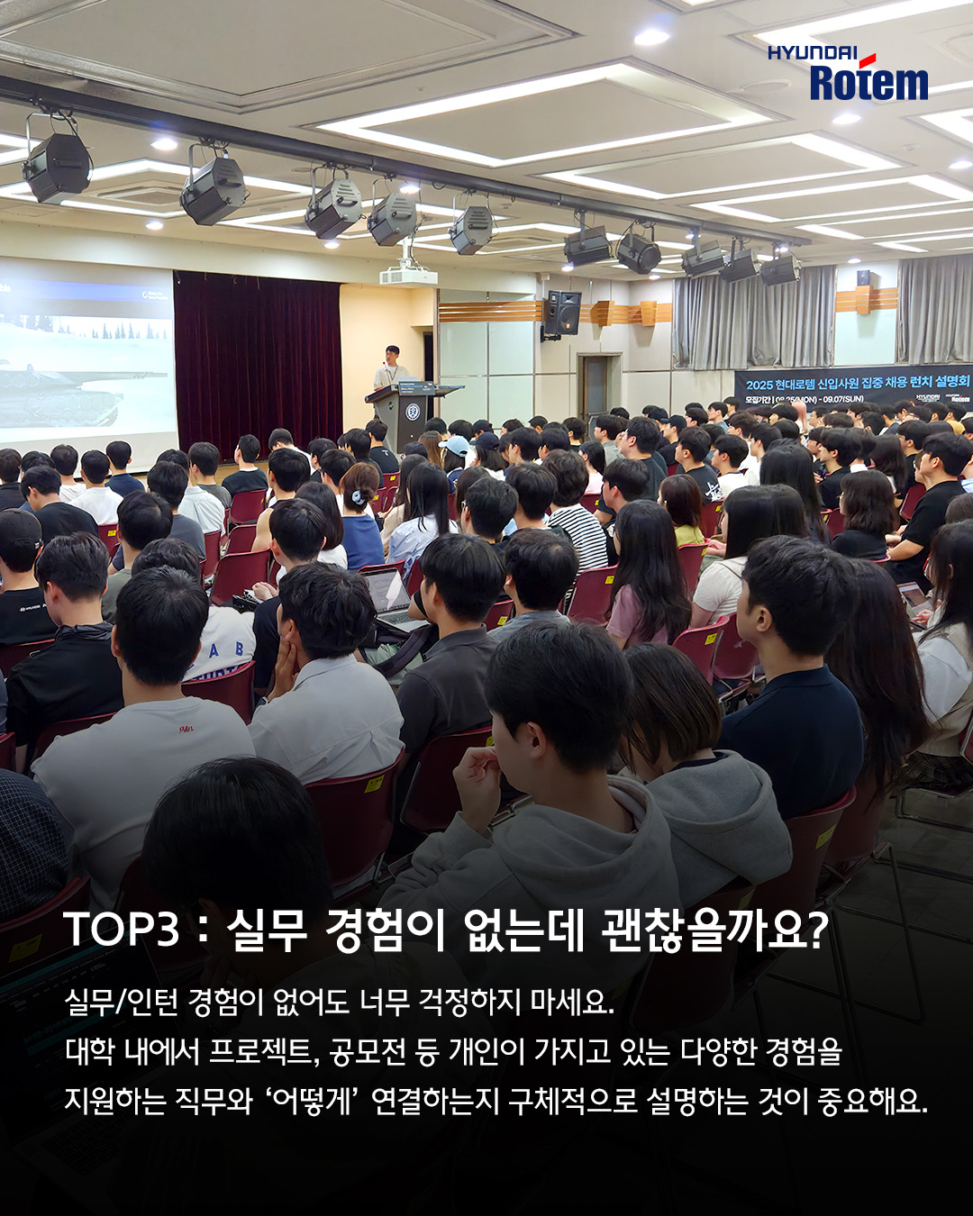 만약 현장에 직접 오지 못했거나, 현대로템 입사를 꿈꾸는 분들이라면 이번 리뷰를 주목해 주세요. 2025 현대로템 채용 설명회 현장의 이야기와 가장 많이 나온 질문 TOP3를 정리해 전해드리려 합니다. 취업 준비 과정에 분명 실질적인 도움이 될 거예요!