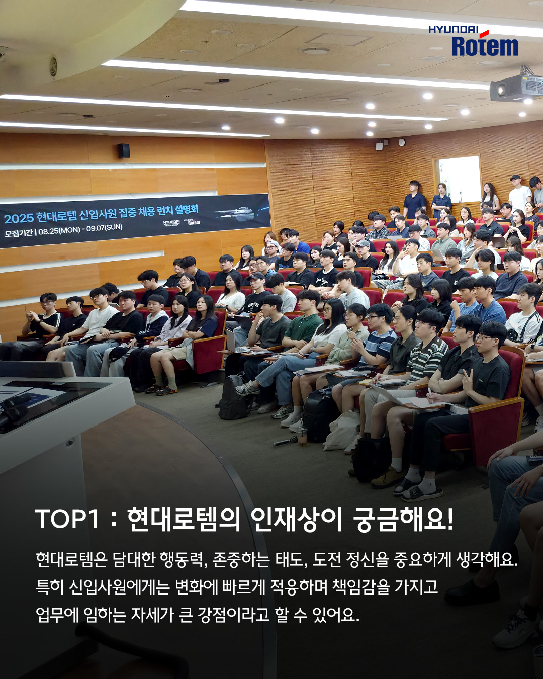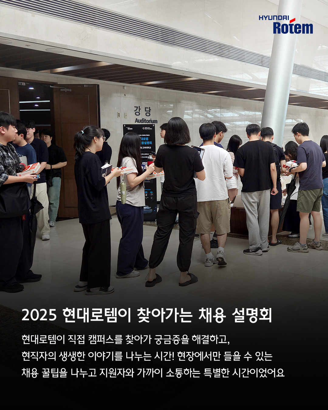 현대로템은 취업을 준비하는 예비 지원자들의 막막함을 덜어주기 위해, 직접 캠퍼스를 찾아가는 채용 설명회를 열었습니다.
