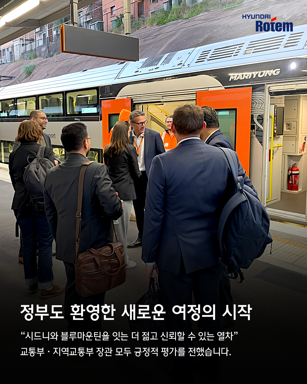 이번 블루마운틴 서부라인의 성공적인 운행은 끝이 아닌 또 다른 시작입니다. 현대로템은 2026년 1분기 남부 울런공(Wollongong) 라인 투입을 준비하며, 차량 신뢰성 강화와 운행 품질 향상을 위한 노력을 지속하고 있습니다. 광활한 호주의 대지를 달리는 열차처럼, 현대로템은 기술력과 안전, 그리고 사람 중심의 철도 철학으로 ‘지속 가능한 이동의 가치’를 구현하는 글로벌 파트너로 나아가고 있습니다.