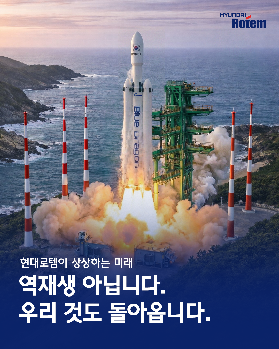 현대로템의 재사용 발사체가 돌아오는 모습을 구현한