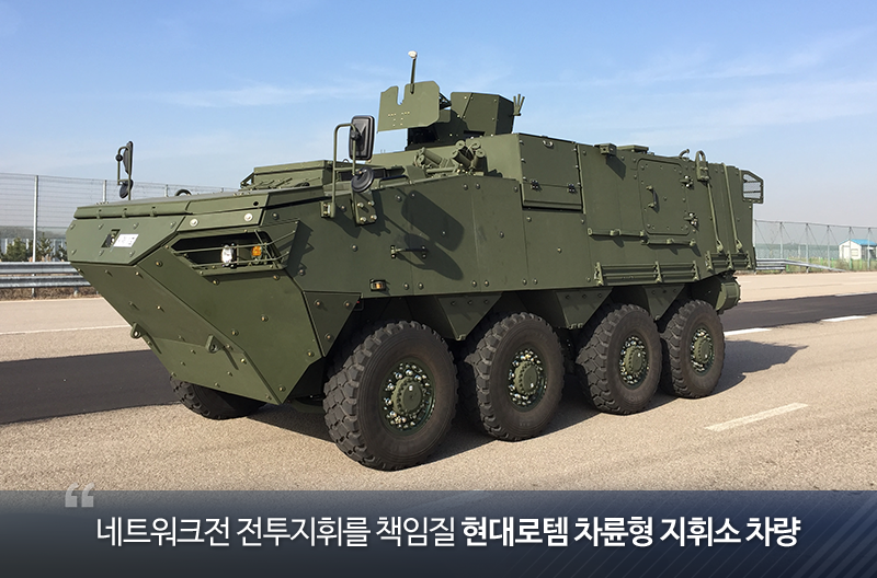 우리에게 조금은 낯선 이름 ‘차륜형 지휘소 차량’. 차륜형 지휘소 차량은 현대로템이 개발한 차륜형장갑차의 계열 차량으로, 신속하게 움직일 수 있는 ‘이동형 지휘소’라고 볼 수 있습니다.