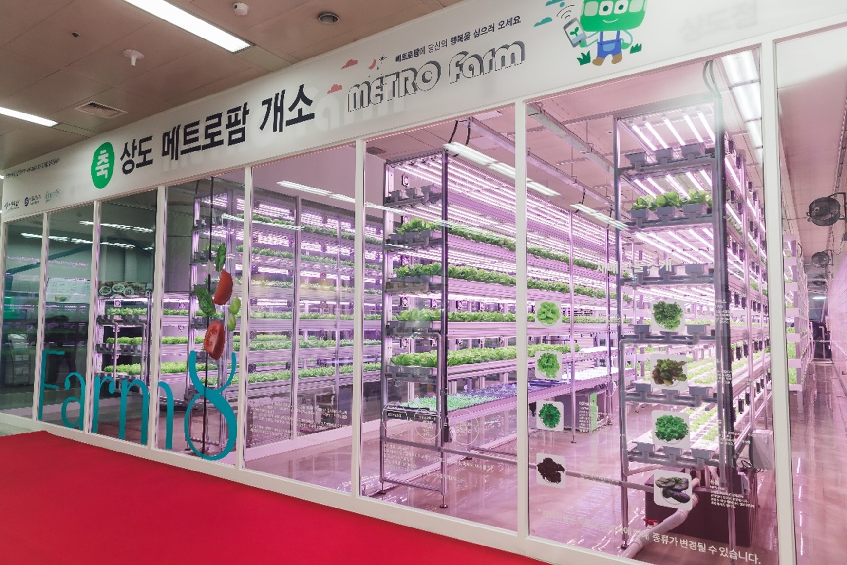 도심 곳곳에서 만나본 농장이 이제 지하철 역사까지 내려왔습니다. 바로 서울의 상도역, 답십리역에서 운영되는 메트로 팜입니다. 국내 스마트팜 농업회사법인 팜에이트와 서울시 서울교통공사가 함께 기획한 것으로 앞으로 을지로3가역, 답십리역, 천왕역, 충정로역까지 확대 운영이 계획되어 있습니다.