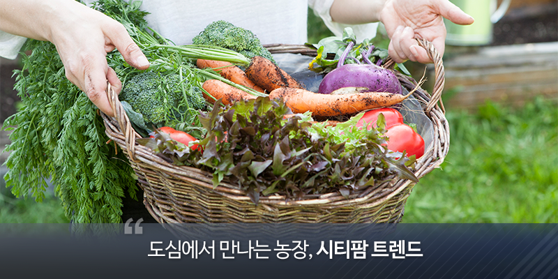 푸릇푸릇한 자연을 배경으로 출연자가 신선한 먹거리를 키우고 요리하는 영화 또는 예능 프로그램은 흔히 힐링 영상으로 불리며 많은 사람들의 사랑을 받습니다. ‘도시’라는 글자와는 사뭇 다른 안온한 느낌을 주기 때문인데요. 최근엔 전염성 바이러스의 확산, 기후 위기로 일상까지 위협받으며 안전한 먹거리와 자연에 대한 관심도가 더욱 높아지고 있습니다. 그래서일까요? 도심 곳곳에 자연을 가까이 느끼며 건강한 먹거리까지 얻을 수 있는 일석이조의 시티 팜이 들어서고 있습니다.