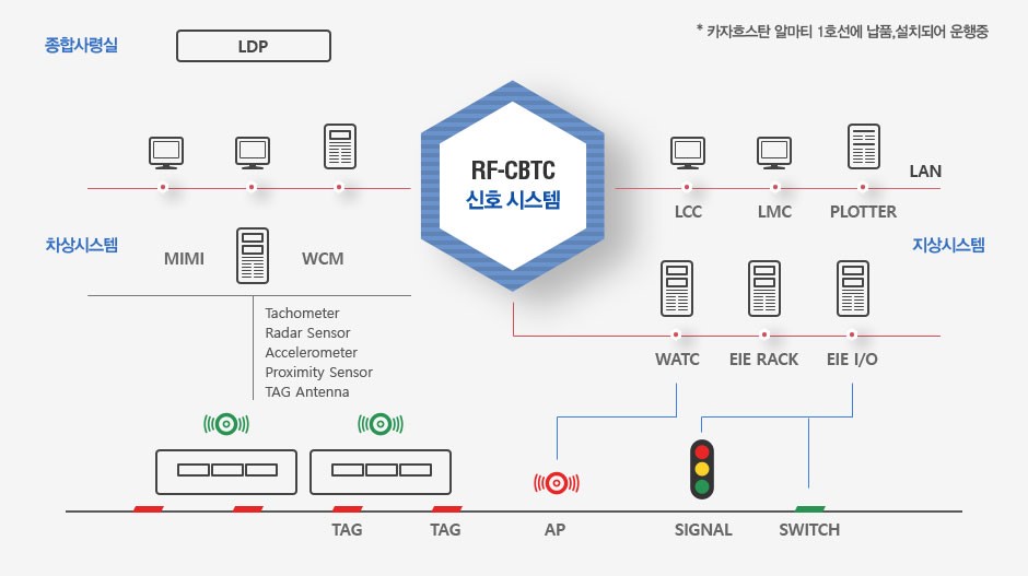 그렇다면 과연 알마티 전동차에 탑재된 신호시스템은 어떤 기술일까요? 기존의 철도차량은 지상에 설치된 장비와 궤도 레일을 통해 주파수를 전송 받는 속도코드 신호제어 방식을 사용했습니다. 관제실에서 열차로만 정보 전달이 가능하기 때문에 열차의 고장 상태나 내부 상황 확인이 어려웠고, 노선마다 다른 방식을 사용해 상호 호환이 불가능했죠.