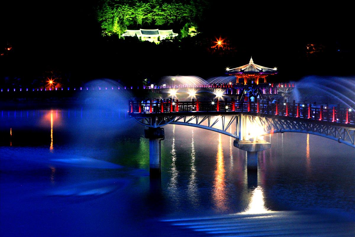 다음은 안동 여행에서 빼놓을 수 없는 월영교입니다. 월영교는 국내에서 가장 긴 목책 인도교로 낮에 봐도 예쁘지만, 특히 야경 명소로 추천하는 곳입니다. 저녁이 되면 월영교에는 오색빛깔 불빛이 켜지며 아름다운 풍경과 분위기를 자랑합니다.
