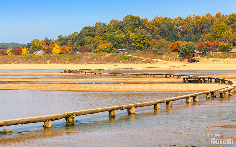 국토교통부가 선정한 한국의 아름다운 길 100선 중 하나인 영주 무섬마을은 마을의 3면이 물로 둘러싸여 있는 물돌이 마을입니다. 강변에는 넓은 백사장이 있고, 무섬마을의 핫 스팟인 외나무다리와 자연이 조화를 이루고 있습니다.