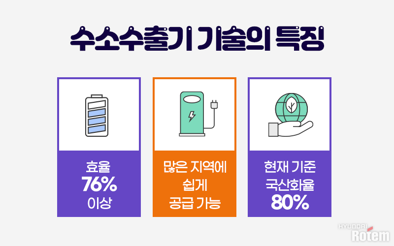 한편, 현대로템은 기술 국산화에 이어 대형화까지 추진하고 있습니다. 현재 수소추출기 기술로는 하루에 수소 640kg을 생산 가능한데요. 이는 수소전기차 ‘넥쏘’ 기준으로 116대를 충전할 수 있는 양입니다. 나아가 현대로템은 지금보다 더 많은 수소를 생산할 수 있는 중대형급 수소추출기도 개발할 계획입니다.