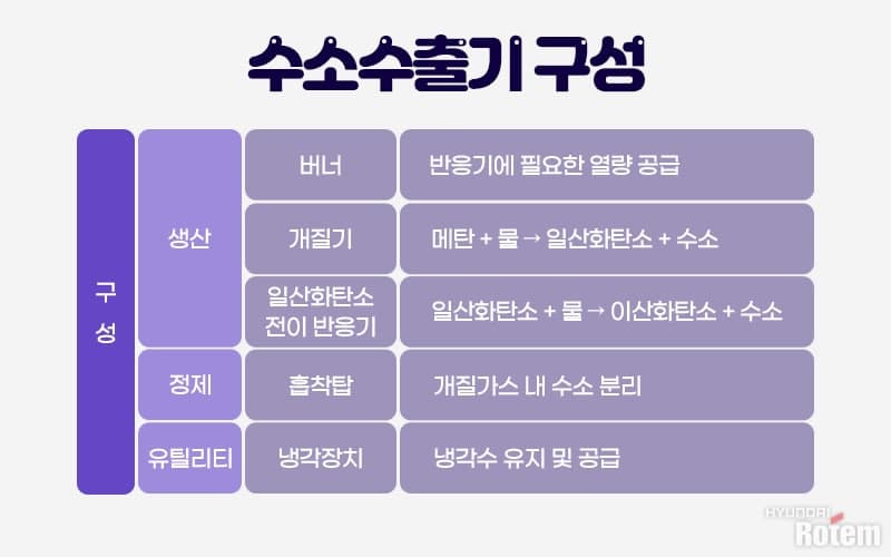 천연가스가 수소추출기를 거치며 고순도의 수소로 재탄생하는 과정은 다음과 같습니다.