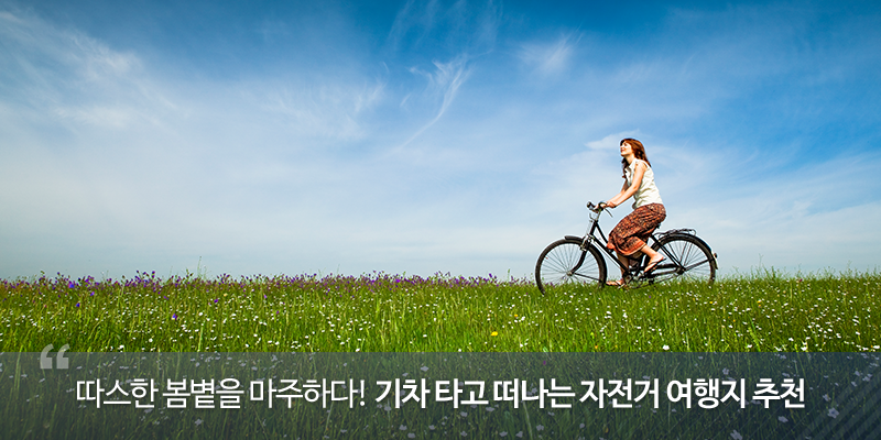 이렇게 자전거를 직접 기차나 지하철에 휴대해 여행을 떠날 수 있지만, 기차와 자전거 각각의 여행 테마를 온전히 즐기는 것도 좋은 방법입니다. 서울 근교 자전거 여행 코스로 소개하는 세 가지 장소는 모두 역 근처에 자전거 대여소가 있어, 가볍게 기차를 타고 이동할 수 있는데요. 그럼, 본격적으로 시원한 강바람을 맞으며 스트레스를 털어낼 수 있는 자전거 여행지를 만나보겠습니다!