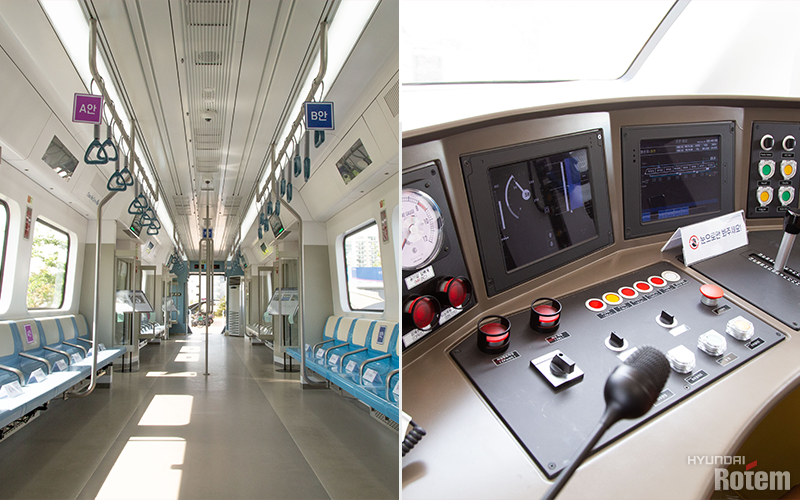 철도차량을 이용하는 승객 편의성을 고려해 여러 편의시설을 적용했다는 점입니다. 객실 의자 폭을 450mm에서 480mm로 넓히고, 의자 사이에 분리대를 설치해 쾌적함을 높였습니다. 출입문 상단과 객실 의자 사이에는 대형 안내표시기(29인치)를 설치해 다양한 정보를 제공할 수 있도록 했습니다. 객실마다 4개의 공기정화장치를 설치하고 객실 선반을 없애 개방감을 추구한 것도 GTX-A 차량의 특별한 점이죠.