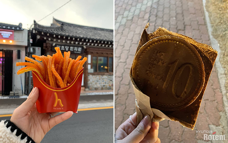 전통 한옥 양식을 그대로 살려 특유의 고즈넉한 분위기를 풍기는 예쁜 카페와 식당, 사진관 등이 모여 있어 젊은 세대들의 감성을 자극하는 황리단길. 각 상가마다 다양한 레트로 감성 체험들과 거리를 둘러보며 먹기 좋은 간단한 주전부리들이 인기입니다.
