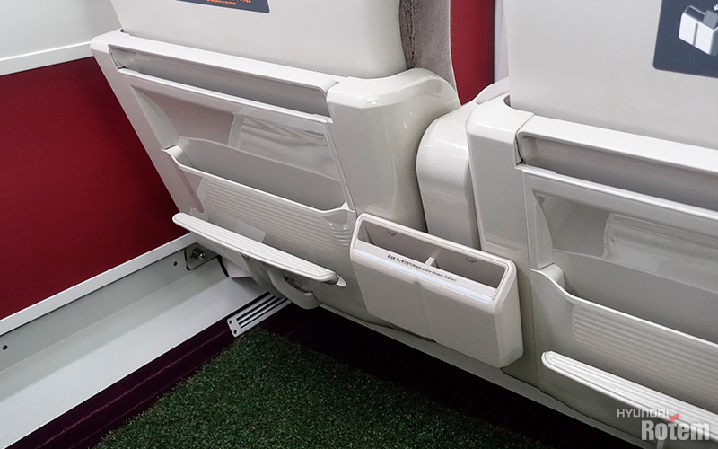 차 폭이 넓은 데다 승객 편의성을 고려한 새로운 좌석을 채택해 보기에도 고급스러운 것이 특징입니다. 무선 충전을 지원하는 스마트폰을 넣어두기만 하면 충전되는 스마트폰 충전 포켓이 좌석마다 달린 것도 포인트죠. 이 부스에는 많은 외국 바이어들이 차량에 타보는 등 관심을 보였습니다.