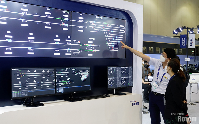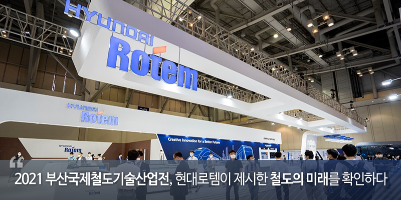 지난 2003년부터 격년으로 열린 부산국제철도기술산업전은 올해로 10회째를 맞이하는 국내 유일의 국제 철도 박람회입니다. 올해 역시 수출의 기회를 엿보는 국내 업체들과 더 좋은 기술을 접하고 싶은 글로벌 업체 등 총 95개 업체들이 참여해 성황을 이루었습니다. 현대로템은 2만 6천 평(약 8,000평)이 넘는 벡스코 제1전시장 업체 중 가장 큰 규모인 2664㎡(약 805평) 규모의 부스를 마련해 입구에서부터 보일 정도로 규모 있는 전시를 준비했습니다.
