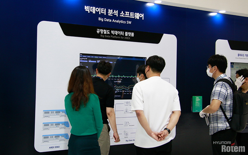 부스에는 실제 열차의 빅데이터를 활용한 다양한 플랫폼들이 전시되었는데요, 그 중에서도 눈에 띄는 점은 ‘네이버 클라우드’와의 협력입니다. 열차의 IoT 장비와 센서를 통해 수집된 데이터들을 활용하여 클라우드 기반의 빅데이터 플랫폼, 실시간 진단 모니터링 플랫폼, 통합 관제 플랫폼 등 운영자와 유지보수자에게 유용한 정보를 제공하는 플랫폼 서비스를 선보였습니다. 수집된 데이터는 플랫폼에서 트랜드, 통계, 머신러닝 등을 통해 분석되며 그 분석 결과를 통해 주요장치의 노화 정도를 예측하고 적절한 시점에 유지보수를 실시해 사고를 예방할 수 있게 해줍니다.