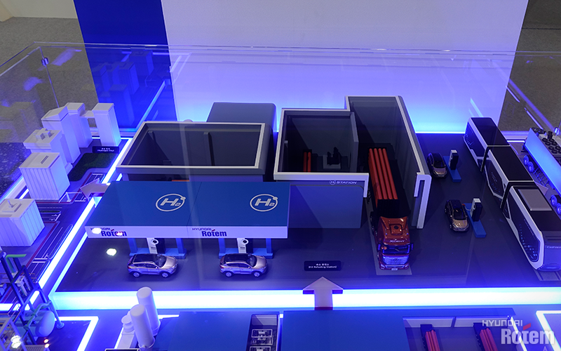 특히 일반 주유소와 같은 고정식 충전설비를 비롯해 충전설비를 차량에 탑재해 이동이 가능한 이동식 충전실비 등 다양한 방식으로 수소를 충전할 수 있는 자체 설비로 관람객들의 시선을 사로잡았는데요. 이는 On-Site 충전소와 Off-Site 설비 모두에 대응할 수 있는 현대로템의 수소 충전설비 제작 역량을 기반이 있었기에 가능했습니다.