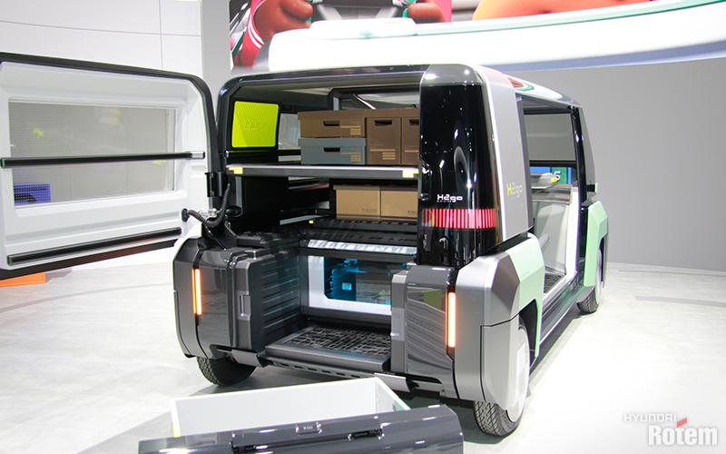 엠비전2GO와 엠비전POP은 자동차 전용이 아닌 범용 30/50kW 수소 연료전지 파워팩을 적용해 배달이나 인력 수송 등 다양한 역할을 수행할 수 있는 초소형 수소모빌리티입니다. 엠비전2GO 외부에는 디스플레이를 장착해 광고 등 다양한 용도로 쓰일 수 있다고 합니다.