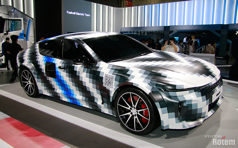 트레일러 드론 부스 옆에는 고성능 PE(Power Electric System) 시스템과 수소 연료전지 기술을 결합한 자동차 ‘Vision FK’가 전시되었습니다. Vision FK는 1회 5분 이하 충전으로 600km 이상을 주행할 수 있습니다. 제로백 4.0초 이하에 최고 속도 260km/h를 자랑하는 장거리 고속주행용 GT 자동차입니다.