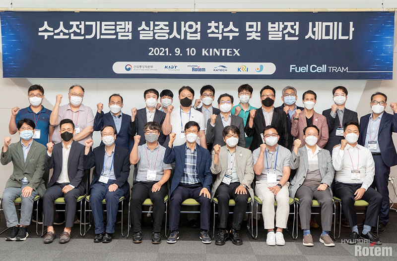 한편, 10일에는 수소모빌리티+쇼 현장 회의실에서 수소전기트램 실증사업 전체 기관 킥오프 회의가 열렸습니다. 이날 회의에서는 현대로템과 관련 기관 담당자들이 참여해 사업 내용과 방향성을 점검했는데요. 올 7월부터 2023년까지 진행되는 실증사업에서는 연료전지 시스템을 탑재한 수소전기트램 시험차량이 시험노선과 실제 노선에서 적용 가능 여부를 검증할 계획입니다.