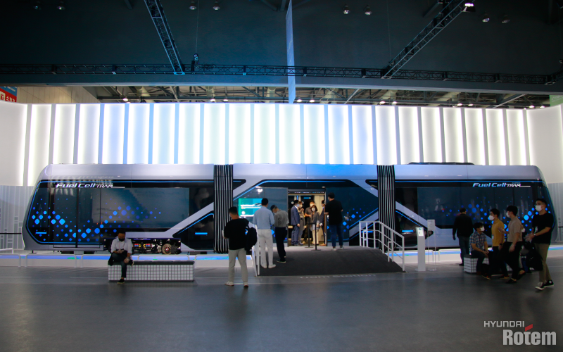 현대로템 역시 이를 기반으로 한 수소모빌리티를 전시했는데요. 첫 번째는 현대로템이 자랑하는 친환경 모빌리티, 수소전기트램입니다.