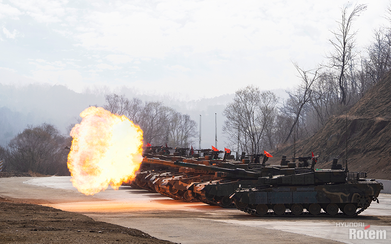 화력 측면에서도 관통력과 사거리가 우수한 120mm 구경 장신포를 채택했고, 자동장전 및 자동추적장치를 탑재해 편의성을 높였습니다. 또 내장 훈련시뮬레이터와 피아식별장치, 능동방어체계가 적용되는 등 K2전차는 세계적인 경쟁력을 갖추고 있습니다.
