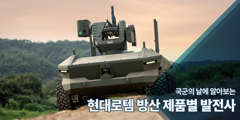 현대로템은 40년이 넘는 시간동안 다양한 지상무기체계를 개발하며 우리 군의 전력 증강에 이바지하고 있는데요. 4차 산업혁명 시대가 도래하면서 변화하는 미래 전장에 대응하기 위해 최근에는 수색, 근접전투, 수송, 정찰 등 다양한 임무를 수행할 수 있는 다목적 무인차량을 개발하며 주목을 받았습니다.