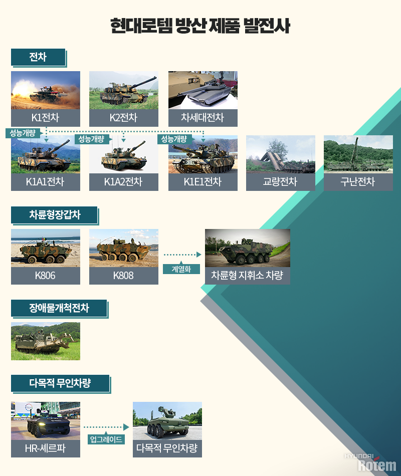 아픈 역사를 가지고 있음에도 짧은 시간만에 자주국방을 실현하고 세계 6위의 국방력을 보유한 군으로 성장한 대한민국. 그 속에서 현대로템의 활약을 빼놓을 수 없을 텐데요. 현대로템 블로그에서는 국군의 날을 맞아 우리 군의 전력 증강에 기여하고자 노력하고 있는 현대로템 방산 제품별 발전사를 살펴보고자 합니다.