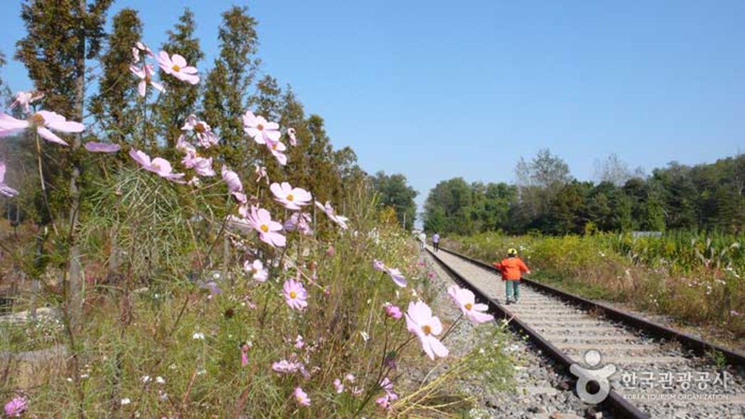 푸른수목원의 끝자락에서는 수목원 옆으로 놓인 오래된 폐철로를 만날 수 있습니다. 이곳이 바로 항동철길인데요. 가을에는 철길 옆으로 코스모스가 활짝 피어 운치를 더합니다. 항동철길의 또 다른 끝은 푸른수목원의 주차장과 연결되어 있어 선선한 가을날 산책코스로 사랑받고 있습니다.