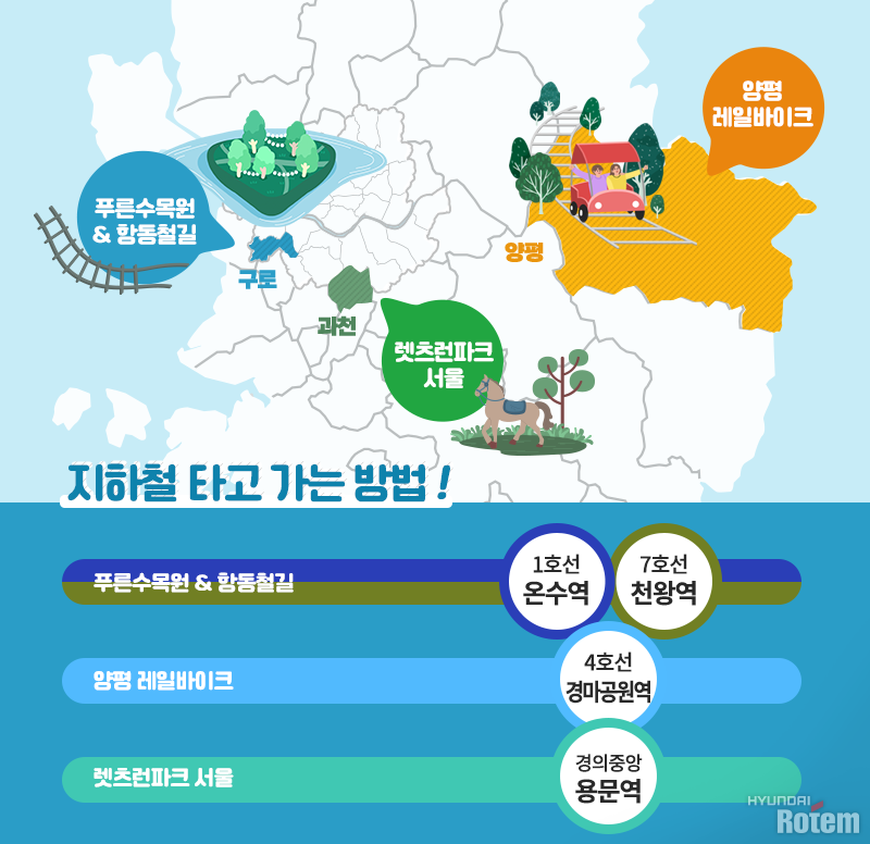 현대로템이 제작한 지하철 1, 7호선을 이용해 방문할 수 있는 푸른수목원은 서울 최초의 시립 수목원입니다. 푸른수목원은 도시의 무분별한 난개발을 막고 친환경 생태공간을 조성한다는 취지로 2013년에 개장했는데요. 구로구의 인적 없는 공터에 식물유전자원을 수집해 증식, 보존하며 청정수목원을 일궜습니다.