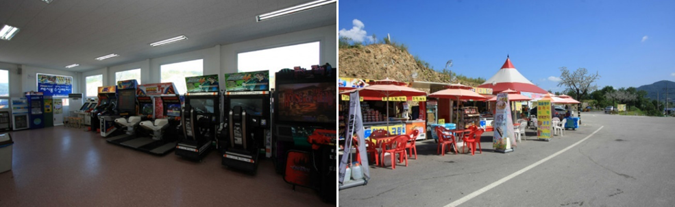 양평레일바이크의 매표소 내부에는 작은 오락실과 다양한 먹거리를 판매하는 매점이 있어 대기시간이 생기더라도 지루하지 않게 보낼 수 있습니다. 또한 야간에는 알록달록한 전구로 길을 밝혀 또 다른 볼거리를 제공합니다.