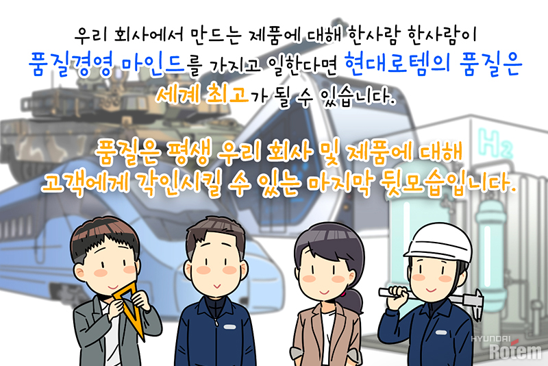지난 10월에는 현대로템 전 직원을 대상으로 품질경영 마인드를 내재화하기 위한 특강이 온라인으로 진행되었습니다. 이번 교육은 놓치기 쉬운 품질의 중요성과 품질경영의 의미를 함께 되새기는 시간으로 긍정적인 반응을 얻었습니다.