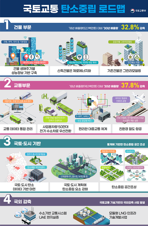 국토교통부는 지난 21년 12월 23일, [국토교통 2050 탄소중립 로드맵]을 발표했습니다. 이는 국토교통부가 공식적으로 발표한 첫 로드맵인데요. 향후 2050년까지 ‘국민의 생활 터전이 되는 모든 공간과 이동 수단의 탄소중립’을 목표로 건물, 교통, 국토 및 도시기반, 국외 감축 분야에서 추진하고자 하는 내용을 담고 있습니다. 국토교통부는 “2022년은 국토교통 분야의 탄소 관련 정책통계에 특화된 연구 지원 체계를 구축하고 국민참여 탄소감축 프로그램을 발굴하는 원년으로 삼을 것”이라고 밝히는 등 강한 의지를 밝혔는데요. 친환경 철도 구축에 대한 구체적인 계획을 알리며 향후 대한민국 철도에 어떤 변화가 생길지 기대를 모았습니다.