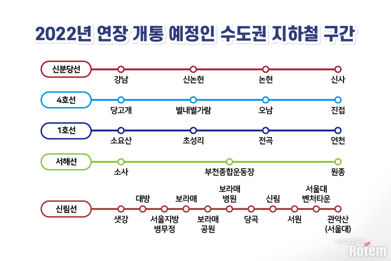 새해에는 수도권 일대를 비롯해 전국에 크고 작은 철도교통망 개편이 이뤄질 예정인데요. 시민 여러분의 안전하고 편리한 철도 이용과 지구 환경을 위해 현대로템은 2022년에도 부지런히 달릴 것입니다. 더 나은 미래를 향해 새로운 도약을 준비하는 현대로템과 올 한해도 함께 해주세요!