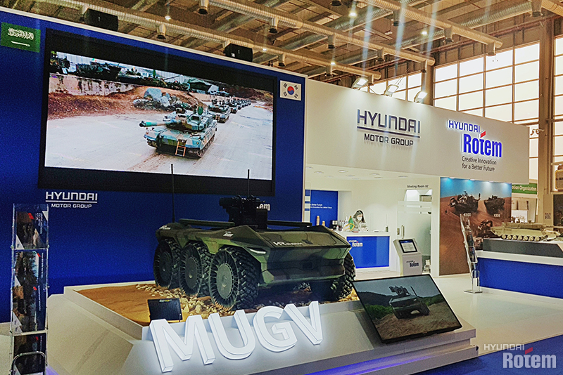 현대로템은 행사장에 마련된 한국관에서 중동형 K2전차와 다목적무인차량(HR-셰르파), 장애물개척전차, 차륜형장갑차 등 4종을 전시했습니다.