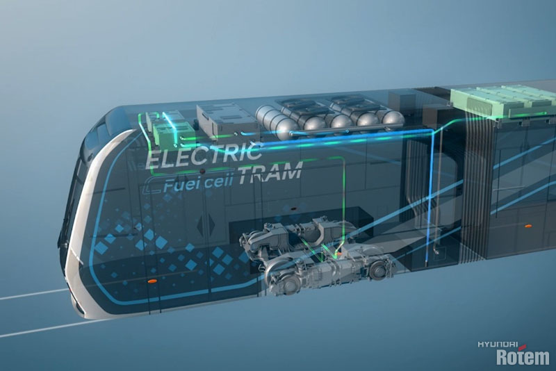 물을 전기분해하면 수소와 산소가 발생하는데, 수소전기열차는 이 전기분해의 역반응을 이용해 생산된 전기를 이용해 달릴 수 있는 것입니다. 화석연료처럼 열에너지를 기계적 에너지로 변환할 필요가 없어 에너지 효율이 높은 편이죠. 또 수소전기트램은 동작과정에서 도심의 공기를 깨끗하게 정화하는 공기정화 기능을 갖춰 매우 친환경적인 교통수단이라 할 수 있습니다. 지속 가능한 미래를 위해 환경친화적인 수소전기열차가 앞으로 많은 곳에서 활약할 것으로 기대됩니다.