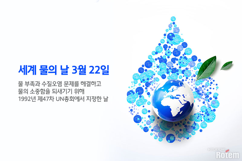 세계 곳곳에서 맑은 물이 자취를 감추고 있습니다. 환경 오염은 기후변화를 야기했고, 많은 지역에서 물 부족 현상이 발생하기 시작했죠. 물은 인체의 약 70%를 구성하는 성분으로, 사람이 살아가는 데 없어서는 안 될 중요한 역할을 합니다. 이런 소중한 물을 지키기 위해 UN은 1992년부터 '세계 물의 날'을 지정해 기념하고 있습니다.