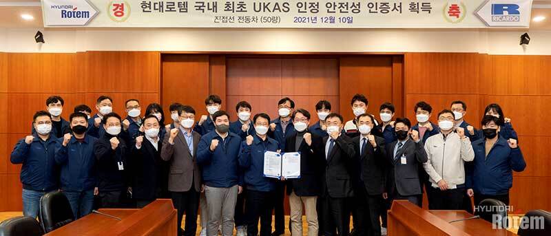 충돌 관련 안전 기술뿐 아니라 보다 안전한 철도차량을 제작하고자 현대로템은 철도 안전 강화를 위한 노력을 꾸준히 이어오며 세계적으로 인정받고 있는데요. 일례로 현대로템은 작년 말, 국내 최초로 철도차량 전체 단위에 대한 글로벌 안전 인증을 획득하기도 했습니다. 이는 철도의 본고장인 영국에서 국제 철도안전 규격에 부합하는 차량 전체 단위의 안전성 관리 역량을 입증한 것입니다.