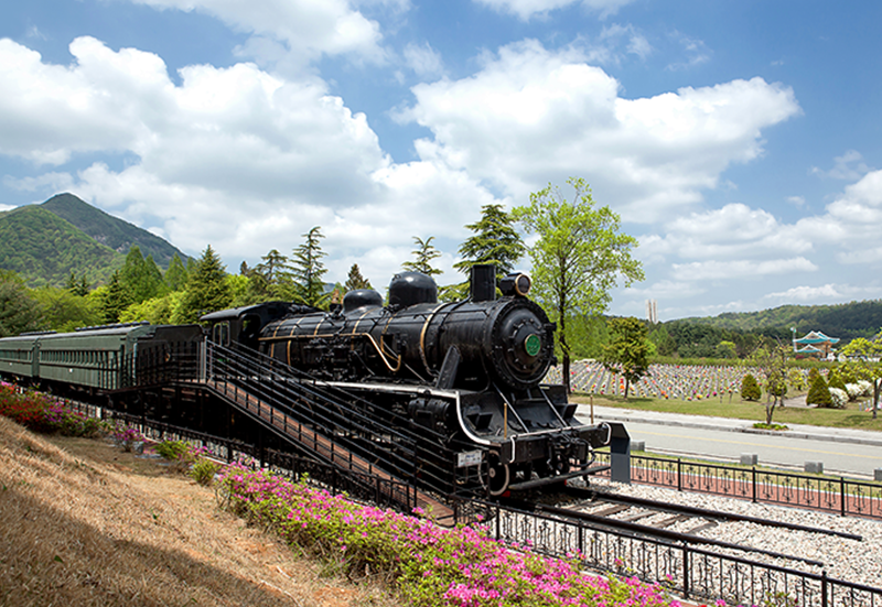 국립대전현충원은 한국철도공사와 함께 호국철도기념관을 건립해 6·25 한국전쟁 당시 전장을 달렸던 증기기관차인 미카 3형 129호와 연료차, 3등 객차 2량 등 총 4량 및 선로, 신호기 등을 전시하고 있는데요. 객차 내부에는 한국전쟁 757일간의 기록과 대표 참전 영웅들을 소개하며, 증기기관차에서 지금의 KTX가 있기까지 시대별 열차에 대한 이야기를 만나볼 수 있도록 하여 철도인 영령의 넋을 추모하며 철도 역사를 알리고 있습니다.