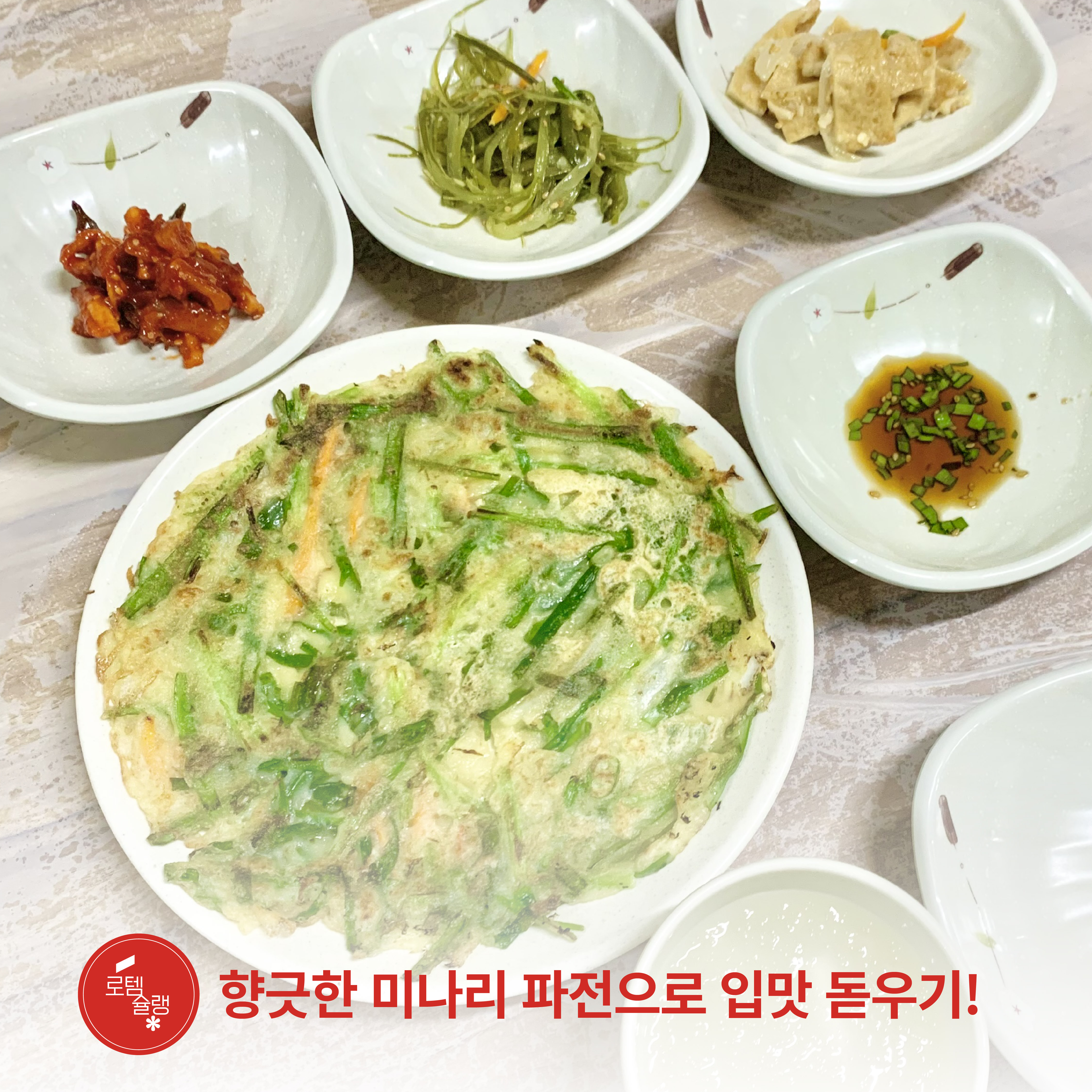 초가집은 아구찜 이전에 나오는 미나리 파전이 정말 명물입니다.
