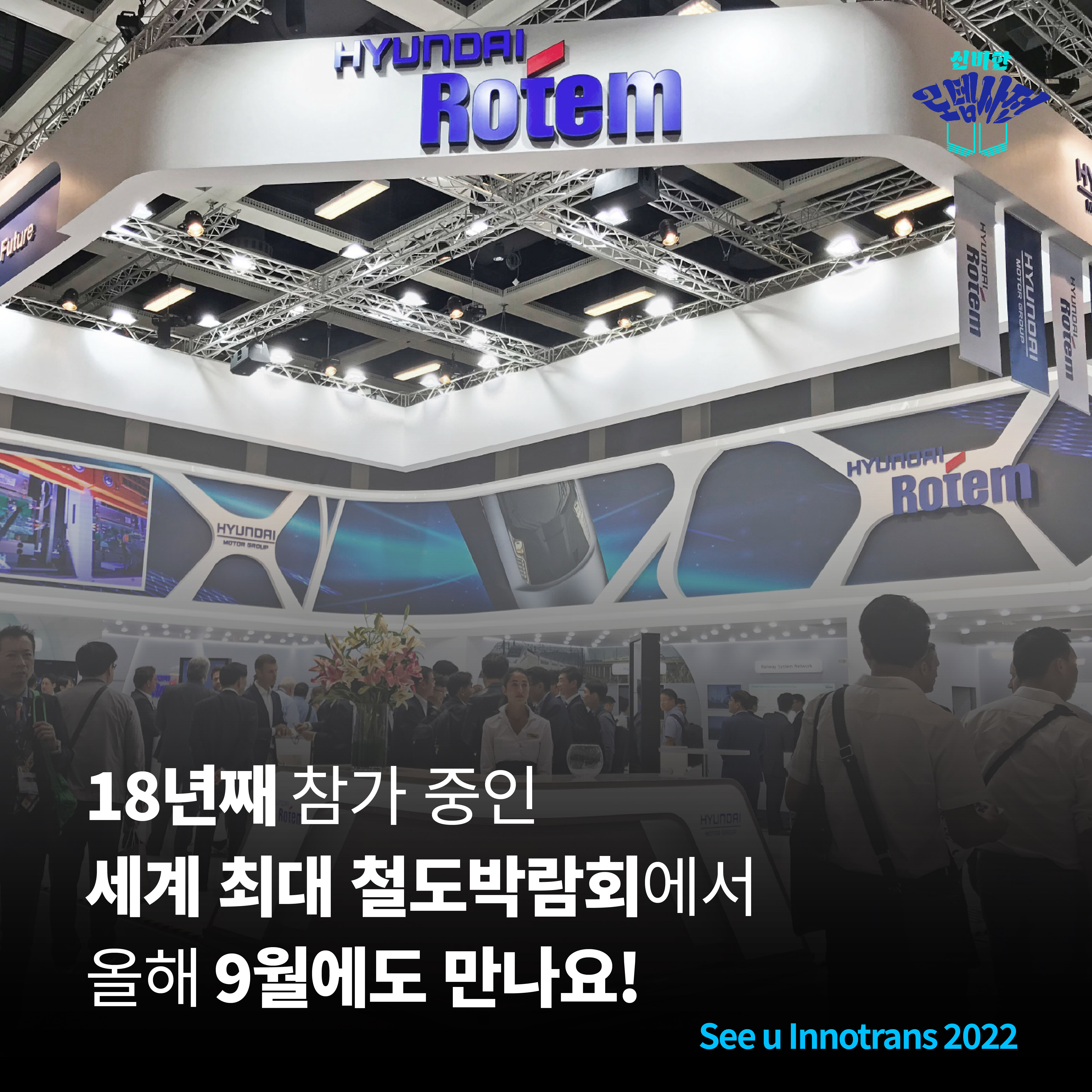 열차도 비슷한 행사가 있어요. 독일에서 열리는 세계 최대 철도박람회인 이노트란스(InnoTrans)가 있습니다. 이노트란스는 2년에 한 번 개최되는 행사로 현대로템은 지난 2004년부터 계속 참가하고 있어요. 9월 개최되는 올해 이노트란스에도 현대로템은 참가할 예정입니다.