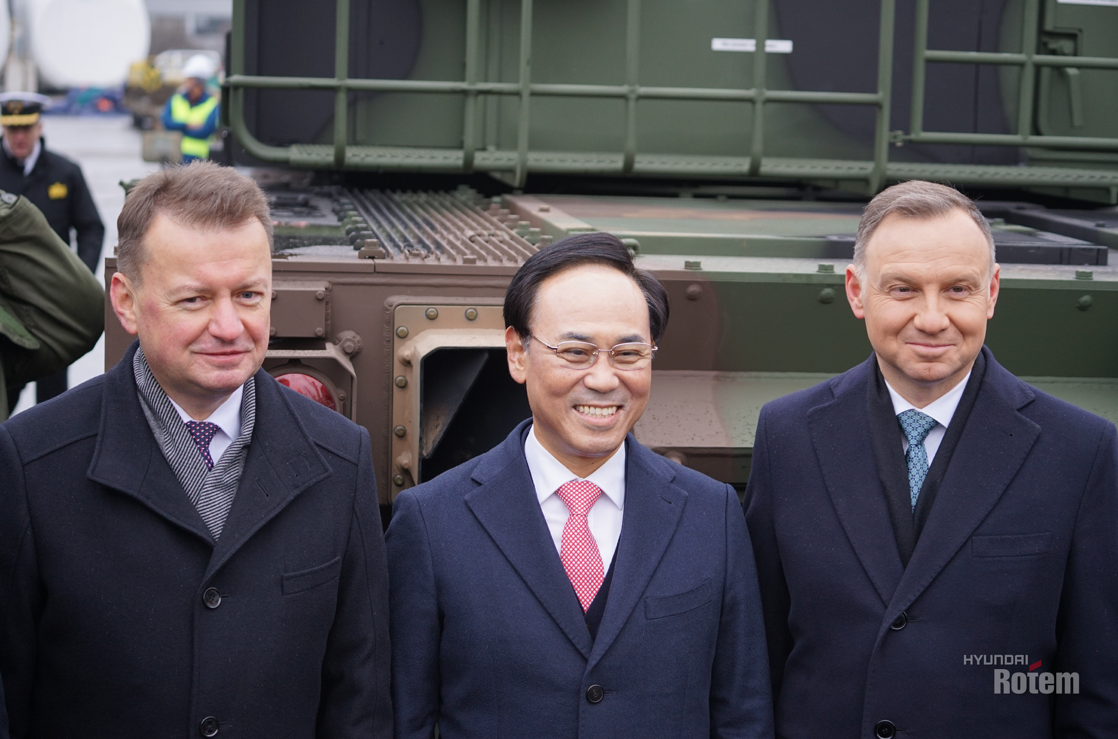 K2 전차의 첫 인도를 기념한 이번 행사에는 안제이 세바스티안 두다(Andrzej Sebastian Duda) 대통령과 마리우시 브와슈차크(Mariusz Błaszczak) 부총리 겸 국방장관, 세바스티안 흐바웩(Sebastian Chwałek) 국영방산그룹(PGZ) 회장 등 폴란드 정관계 인사와 엄동환 방위사업청장, 유동준 국방부 전력자원관리실장, 임훈민 주폴란드 대사, 이용배 현대로템 사장 등 한국 측 민관 인사가 참석했습니다.