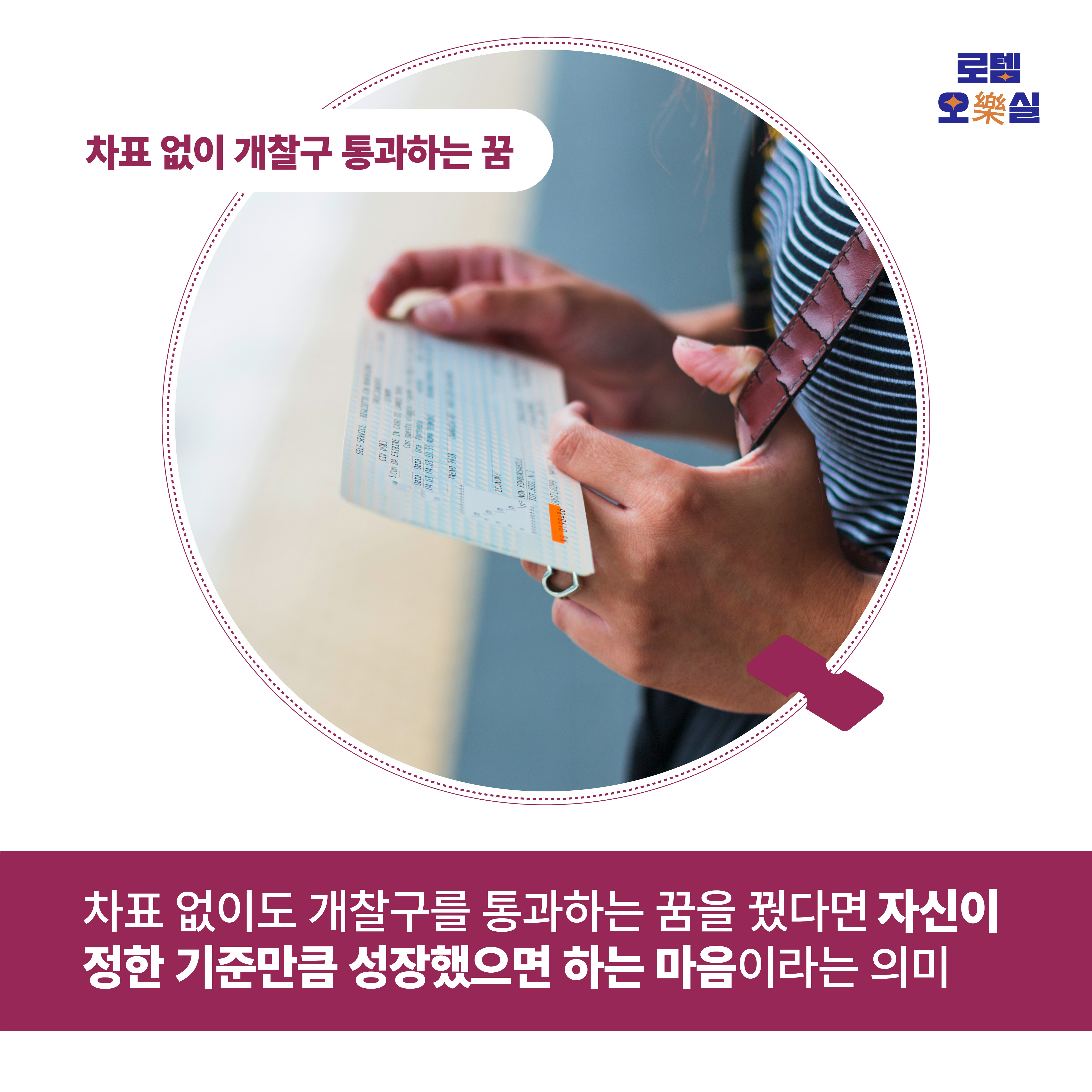 차표 없이도 무사히 개찰구를 통과하는 꿈을 꿨다면 자신이 정한 기준만큼 성장했으면 하는 마음이 투영된 것이라고 합니다. 이 꿈은 자기 기준이 엄격한 사람들에게 나타날 확률이 높은데요. 지금보다 더 행복하게 살아야겠다는 강박은 잠시 버리고 스스로에게 너그러운 마음을 베풀어봐요.