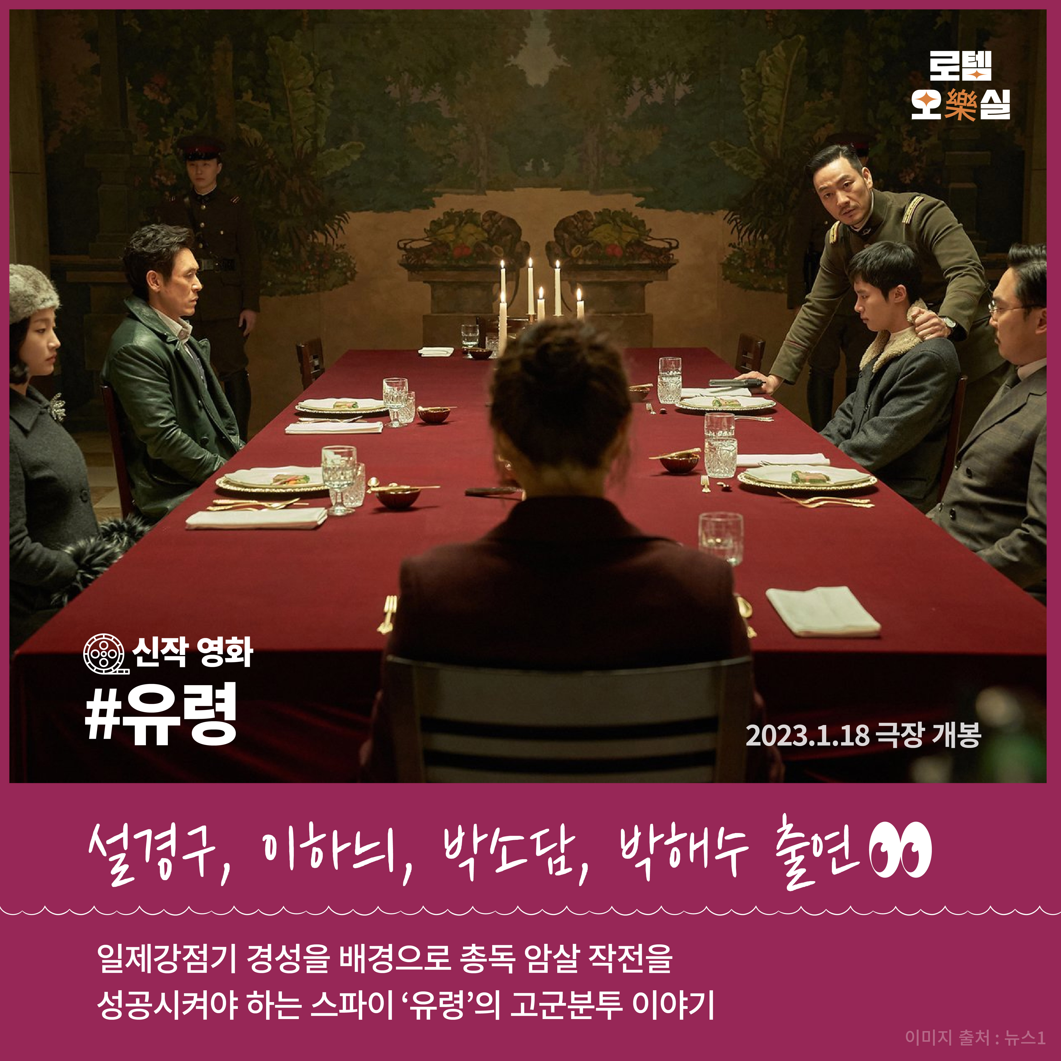 방금 소개해드린 ‘교섭’과 같은 날 개봉인 영화 ‘유령’도 추천 드립니다. 일제강점기 경성을 배경으로 총독 암살 작전을 성공시켜야 하는 스파이 ‘유령’의 고군분투 이야기입니다. 스파이 액션 영화 ‘유령’은 설경구, 이하늬, 박소담, 박해수 등 유명 배우들이 출연해 화려한 액션씬을 보여준다고 하는데요. 혹시 아이들과 함께 볼 영화를 고르고 있다면 관람 나이를 참고해 골라보세요. ‘교섭’은 12세 이상 관람이고, ‘유령’은 15세 이상 관람가입니다. 둘다 기대되는 작품입니다.