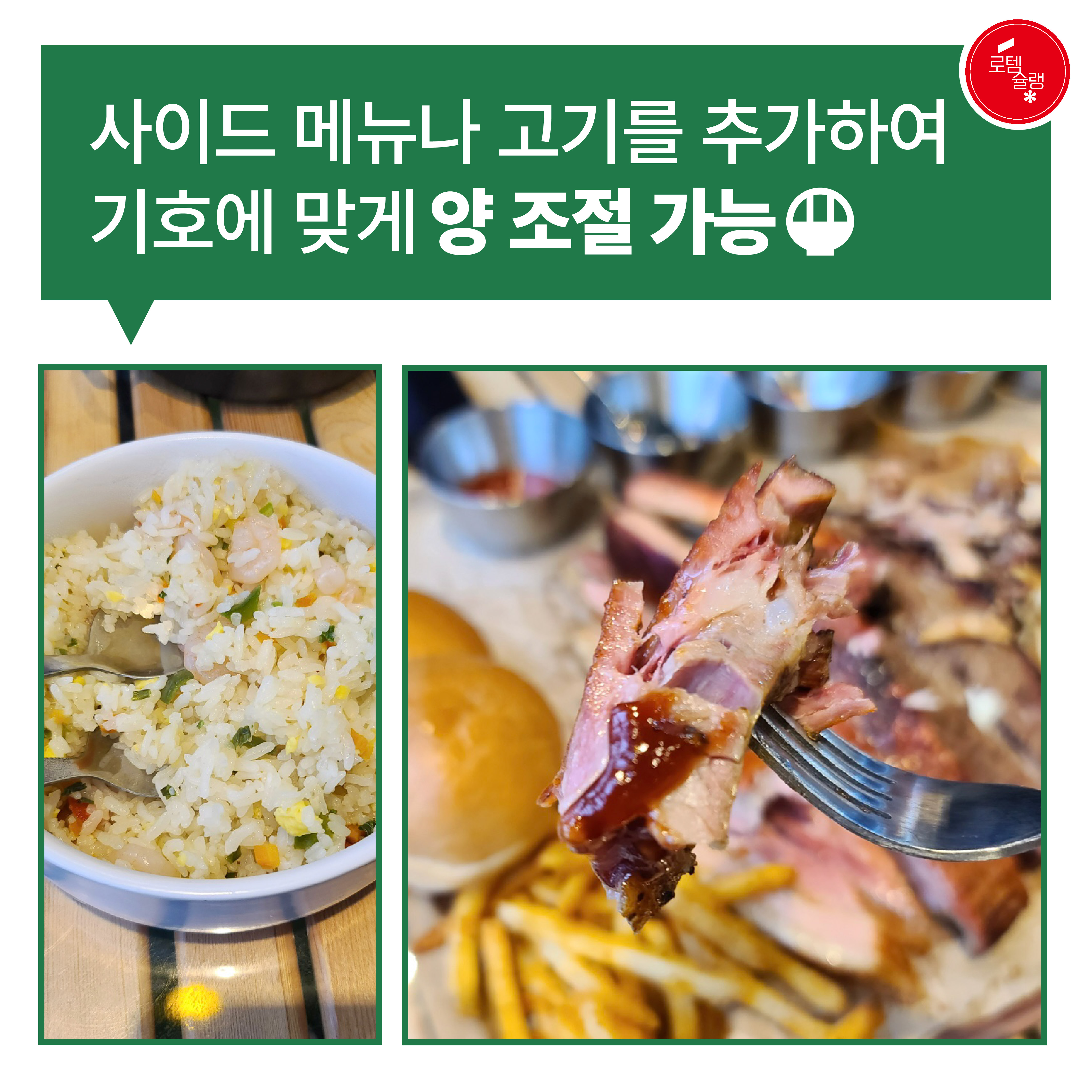 좋아하는 사이드 메뉴나 고기 등을 추가할 수 있어 기호에 맞게 양을 조절할 수 있어요. 고기가 상당히 부드러워서 아이들이나 부모님들도 편하게 즐길 수 있답니다.