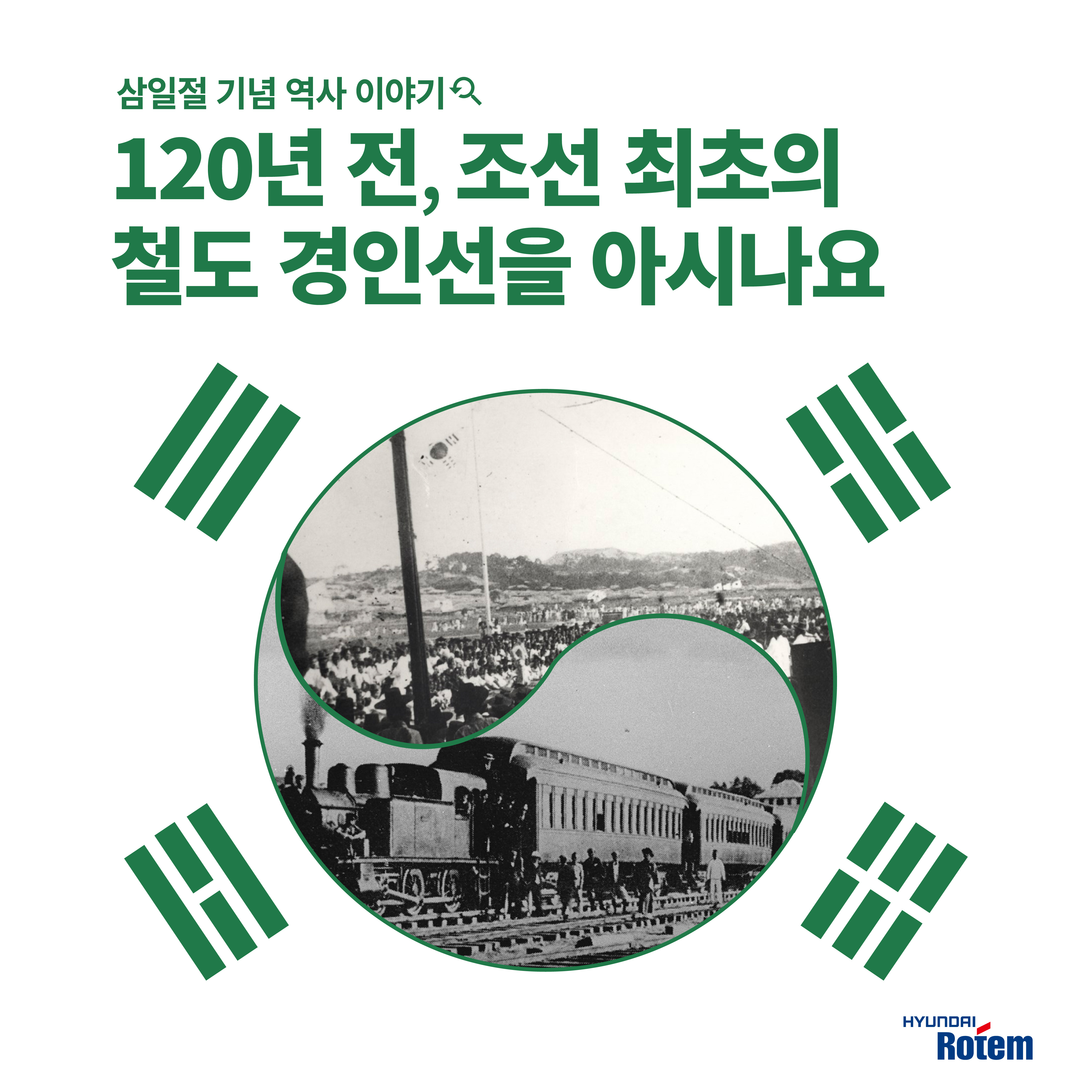 고이 넣어두었던 태극기 다들 꺼내셨나요. 내일은 우리나라의 5대 국경일 중 하나인 삼일절입니다. 대한독립만세를 외치며 독립선언서를 낭독한 날이지요. 여러분들과 오늘은 역사이야기를 간단히 나눠볼까해요. 1900년대 초반을 배경으로 하는 드라마, 영화를 보면 하얀 증기를 내뿜는 증기열차가 간혹 등장하곤 하는데요. 그 주인공, 조선 최초의 철도인 경인선 이야기를 준비했습니다.