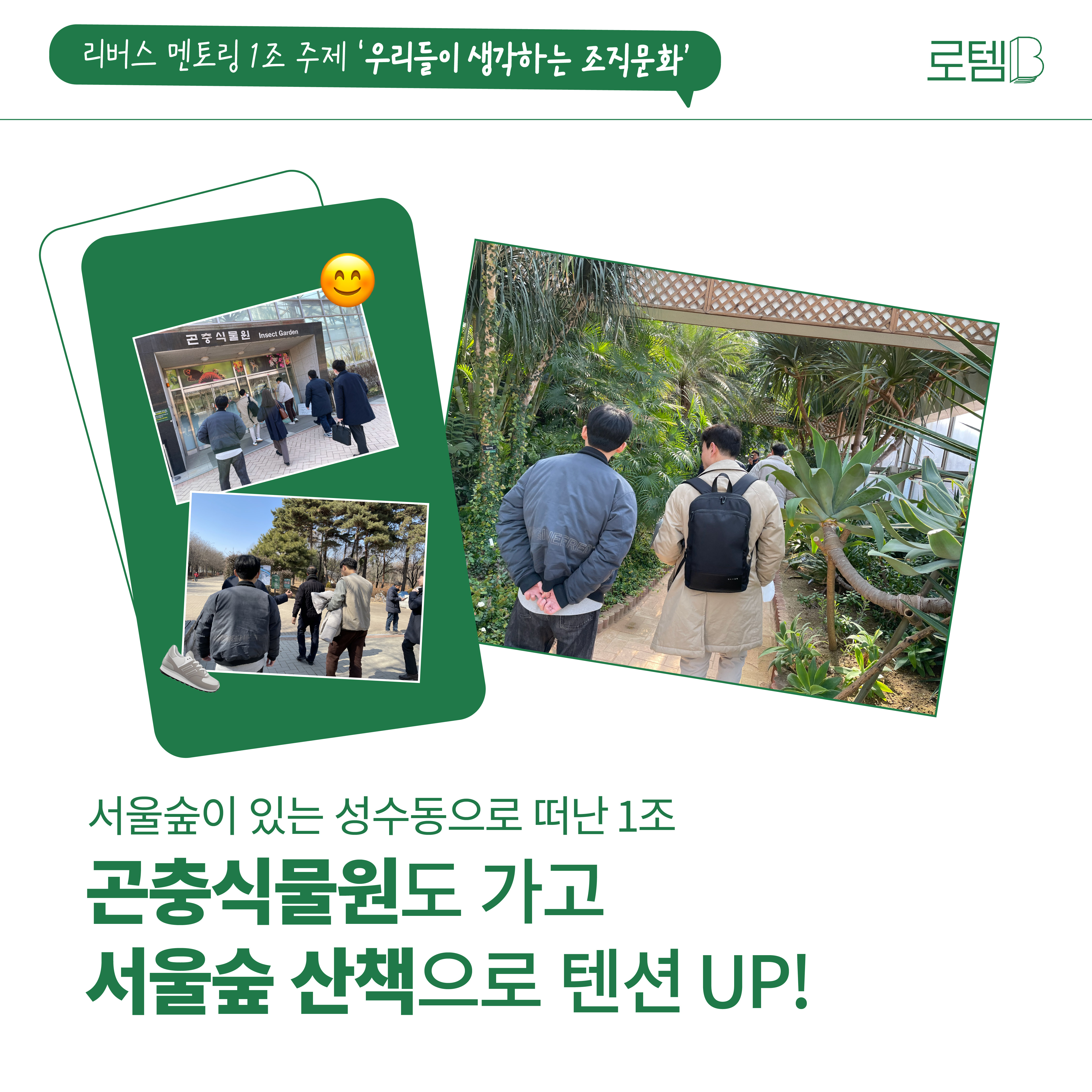 지난달 24일에는 리버스 멘토링 1조의 활동이 있었어요. ‘우리들이 생각하는 조직문화’가 주제였답니다. 1조는 서울숲이 있는 MZ세대들의 핫플레이스 성수동으로 떠나봤어요.